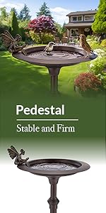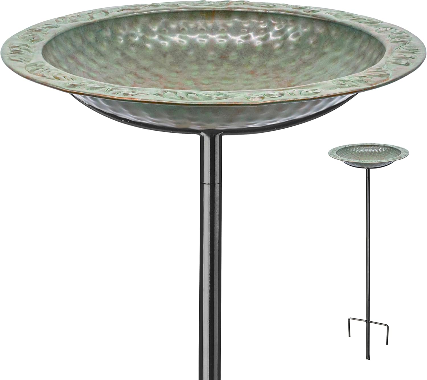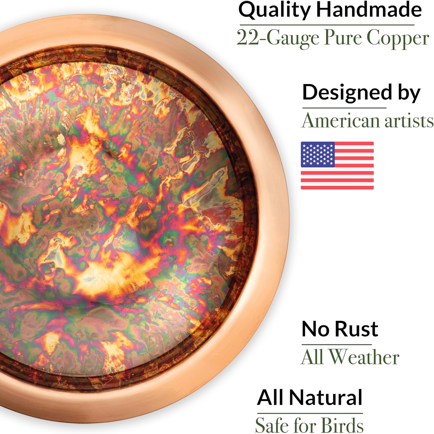 The Pure Copper Bird Bath with a hand-applied fired finish and garden pole from Good Directions adds ambiance to any outdoor oasis, bringing beautiful birds to any backyard. A multipronged garden pole serves as a sturdy support for this classy copper bowl. Creativity combined with high-quality materials, producing a piece that is built-to-last. Simply place atop the included garden pole, this standing bath attracts an array of birds. The rim allows our feathered-friends to rest between drinks. Dimensions: 40” H x 13.5” D.