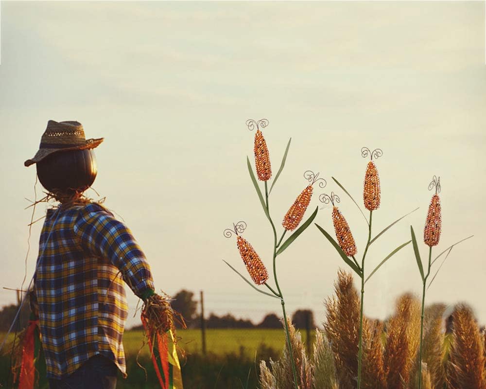 Corn Metal Garden Stake Corn Stalk Decorative Yard Stake Outdoor Fall Harvest Decor Thanksgiving Decoration Guests to your garden won't be able to miss this beautiful and unique metal corn garden stake in this harvest season. Metal corn stake garden decor, hand painted with vibrant colors. Create eye-catching additions to your patio or garden outdoor space. Harvest decor outdoor garden art, simple assembly required, just screw the pole to the top, and screw the corn cob. Metal corn hanging wall decor, perfect for fall harvest decor, Thanksgiving, celebrating the magic of autumn. Fall harvest decorations garden stake is height. Can be used as a housewarming gift. Package Included: 3 x Metal Corn Stake Fall Decorations Outside