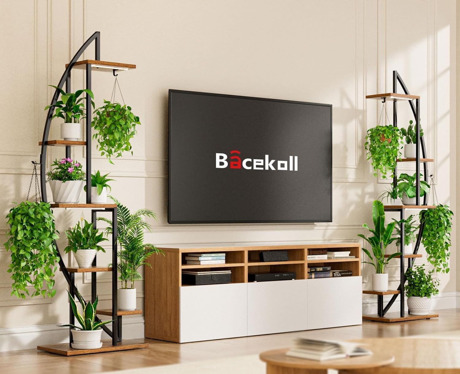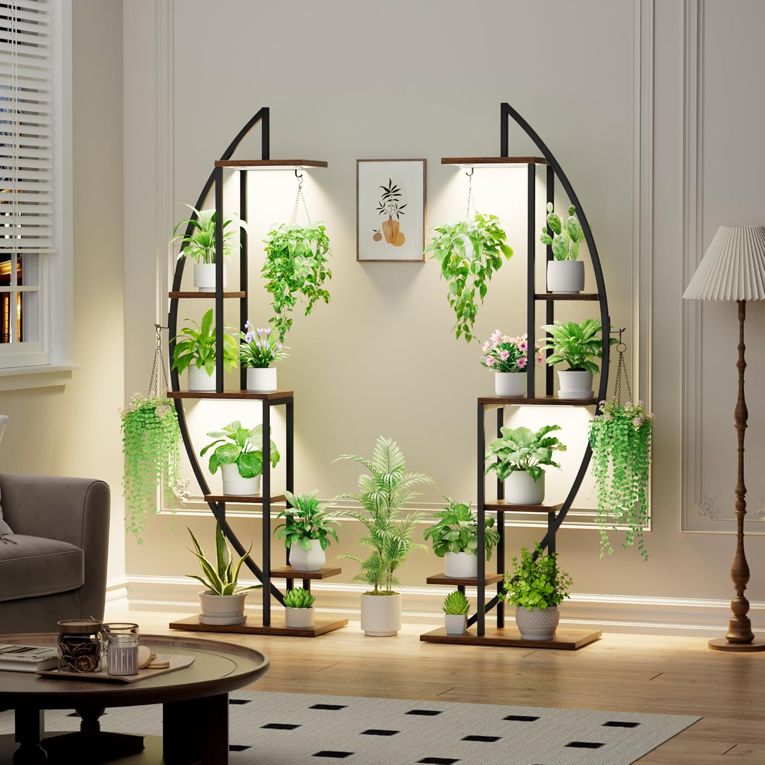 Plant Stand Indoor with Grow Lights, 6 Tiered Tall Plant Shelf, 63" Metal Plant Stand for Indoor Plants Multiple, Half-Moon Plant Rack Display Shelf, 2 Pcs Plant Holder for Living Room, Patio