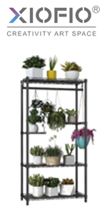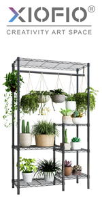 XioFio freestanding 12 pots hanging plant rack can be used as a storage rack or display shelf for plants, shoes, toiletries, towels, utensils, sundries decorative things in your home or patio, as plant shelving, storage organizer shelf, bathroom organizer rack and many other use.